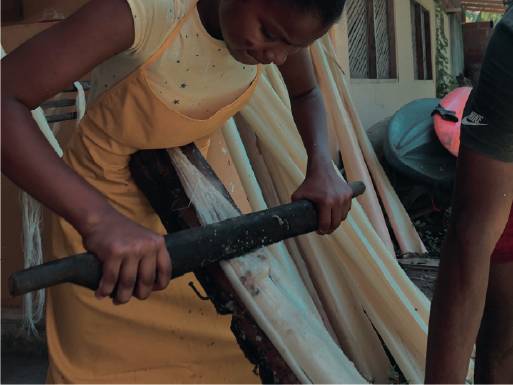 “A la fibra de plátano la descubrimos en 2020, en la larga cuarentena que hubo ese año, nos reunimos un grupo de amigos y amigas curiosos con el tejido con materiales naturales.”